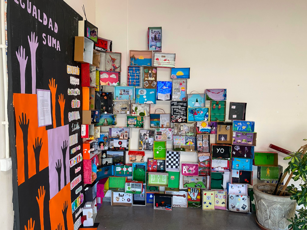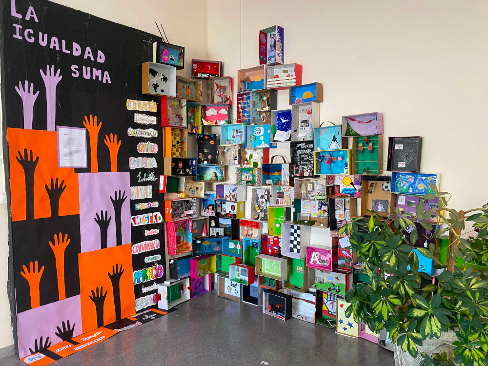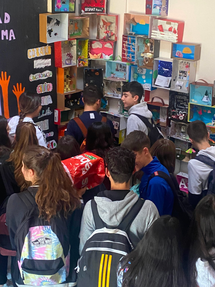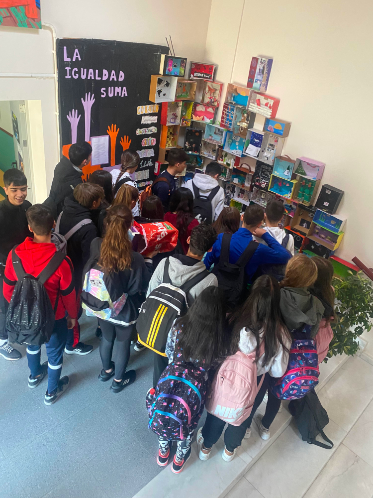 Los alumnos de tercero y cuarto de la eso han realizado un trabajo individual representando, en el interior de una caja, las cosas que más les gustan a ellos o a una persona cercana (una forma distinta de realizar un retrato gráfico, una caja una persona).
