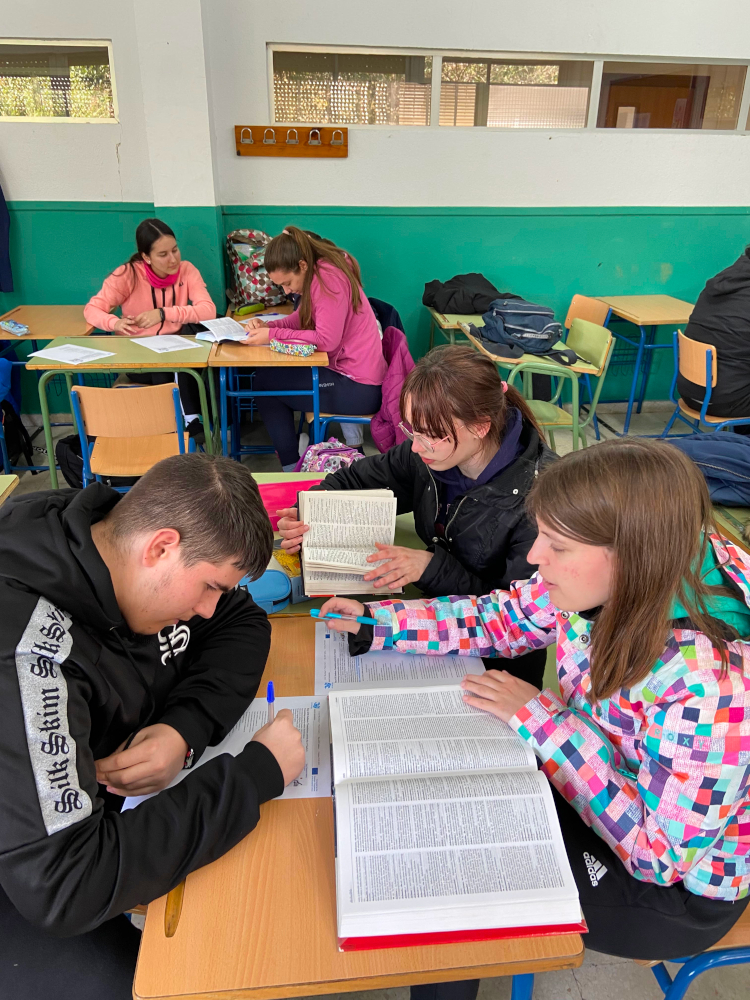 Antes del intercambio y en clase de inglés de 1 bachillerato A: traducción en grupos de un poema del poeta y profesor del centro sueco David Guijosa Aerberhard. También analizaron el poema y prepararon preguntas para el autor. En esta actividad destacan los criterios de evaluación de la LOMLOE relacionados con la comparación de lenguas.