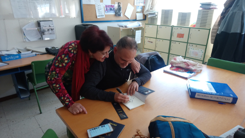 Jorge firmó después los ejemplares que compraron algunos de sus compañeros y compañeras.