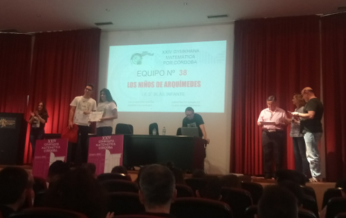El pasado viernes 17 de Mayo tuvo lugar, en el Salón de Actos del Real Jardín Botánico de Córdoba, la entrega de premio de la XXIV Gymkhana matemática por Córdoba en la que nuestro equipo participó con trece equipos, dos de 4º de ESO y once de Bachillerato de un total de 195 equipos participantes en la Gymkhana.