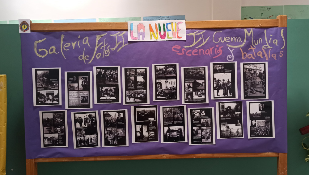 El Departamento de Geografía e Historia, en colaboración con la antigua compañera Ana Ortega, desarrolló entre el 16 y 24 de marzo en nuestro centro una exposición y charla sobre "La Nueve". El alumnado de 4º ESO y 1º Bachillerato, acompañado de sus profesores/as, pudo conocer la relevante participación que tuvo la 9ª Compañía de la 2ª División Blindada de la Francia Libre, formada esencialmente por unos 150 republicanos españoles exiliados, en la IIª Guerra Mundial contra el nazismo y especialmente en la liberación de París.