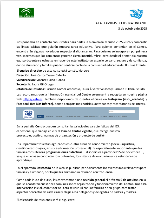 Adjuntamos la circular del director con información interesante de principio de curso así como todo lo relacionado con las reuniones de padres que se celebrarán el próximo 9 de octubre. Pinchar sobre la imagen para descargar el pdf