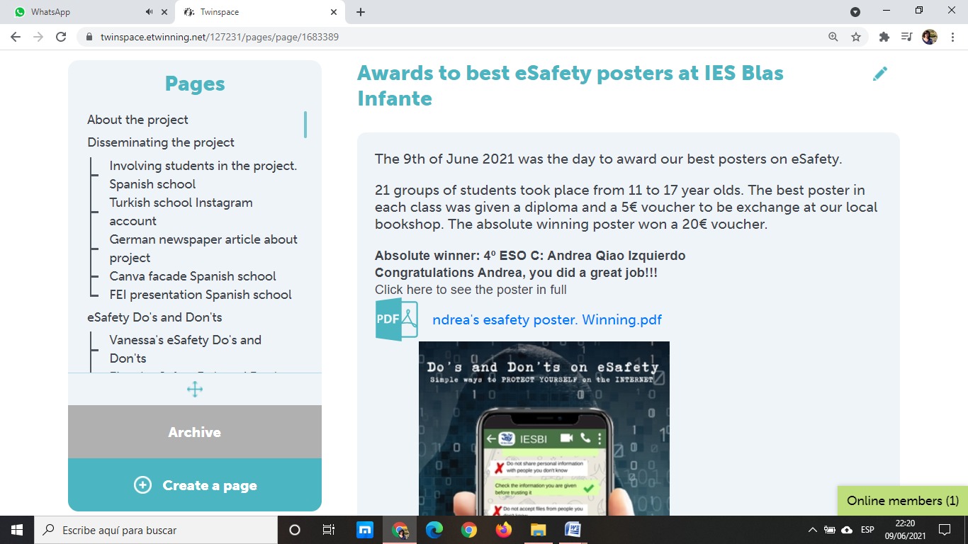 Dentro del proyecto Erasmus+ de este curso se ha realizado un concurso de carteles de e-seguridad organizado por el departamento de Inglés. Han participado todos los grupos de Secundaria y 1º de Bachillerato.
