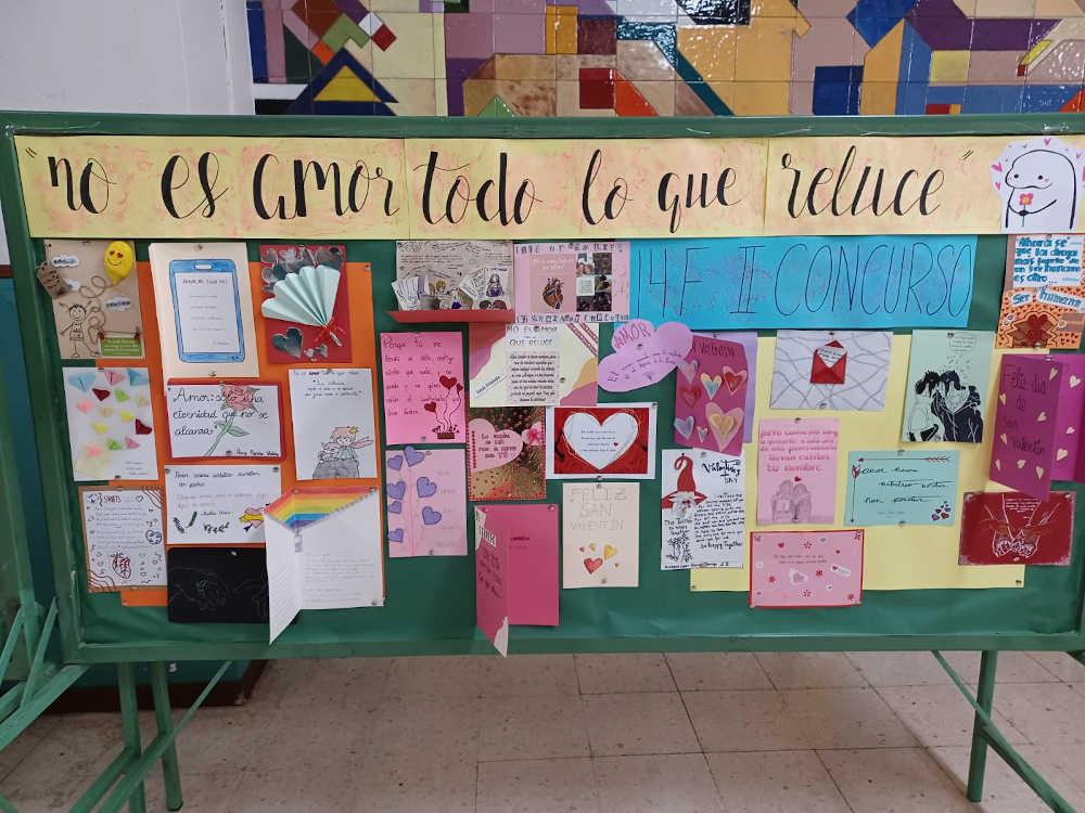 Nuestro centro se llenó el día 14 de mensajes relativos al amor. Desde la Biblioteca y el Departamento de Lengua y Literatura, se celebró el concurso "No es amor todo lo que reluce". Se colgaron frases de Coeducación e Igualdad por el centro que invitaban a agradecer con frases bonitas a aquellas personas que nos hacen sentir bien. Por último, nuestras estupendas conserjes, Andrea, Loli y Eva, terminaron de decorar la entrada con un montón de carteles y adornos. ¡Gracias!