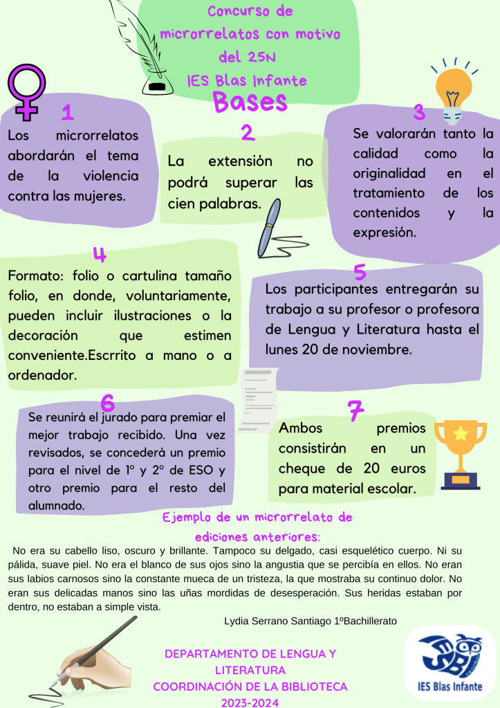 Con motivo del 25N el departamento de Lengua y Literatura organiza un concurso de microrrelatos. Aquí os dejamos las bases