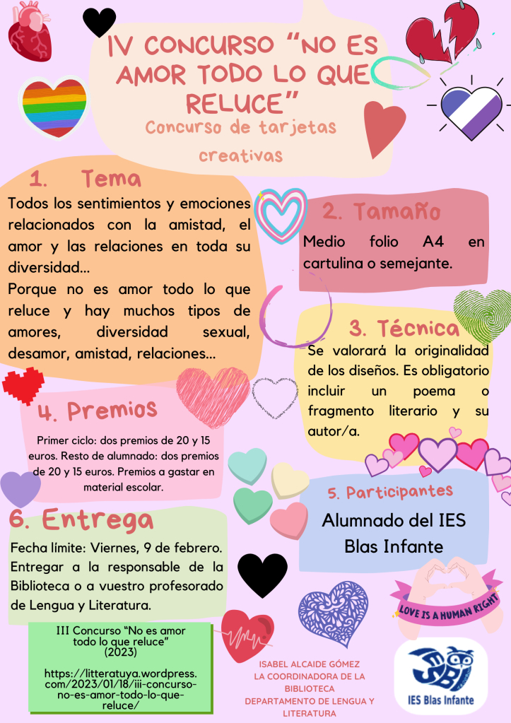 Entregad las tarjetas a vuestros profesoras/es de Lengua y Literatura o a la responsable de Biblioteca antes del día 9 de febrero