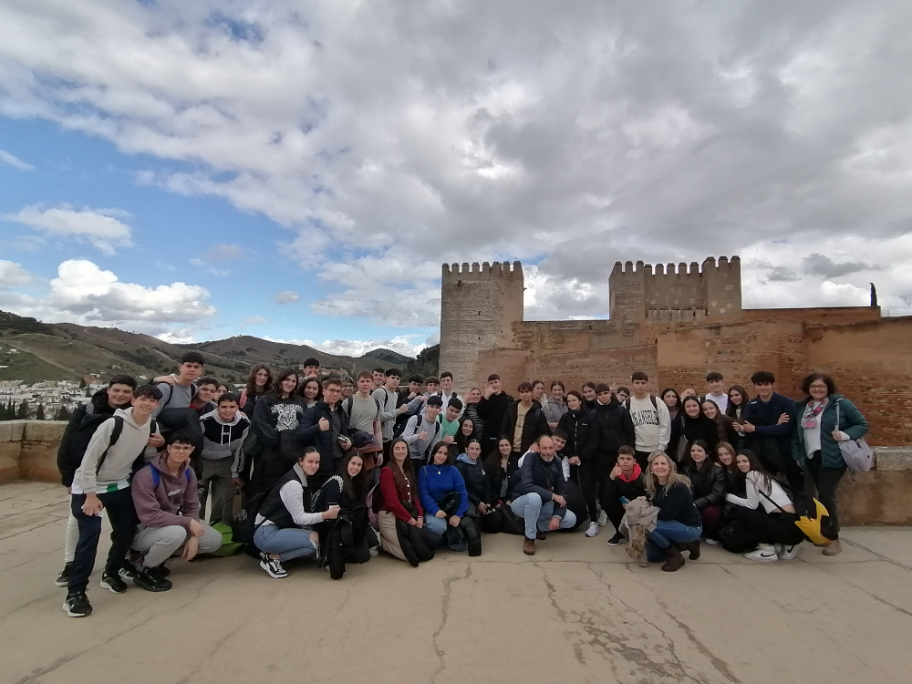 Por la tarde, el grupo se adentró en la majestuosa Alhambra, un palacio y fortaleza que es testimonio del esplendor de la cultura nazarí. Paseando por sus jardines y palacios, los alumnos se sumergieron en la historia de Al-Ándalus, admirando la belleza arquitectónica y la riqueza artística del monumento. La visita a la Alhambra no solo fue una lección de historia, sino también una oportunidad para apreciar el legado cultural que Granada conserva.