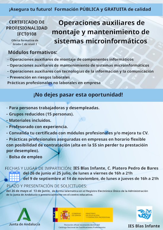 • MP1207_1: Operaciones auxiliares de montaje de equipos microinformáticos (166 h).