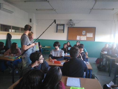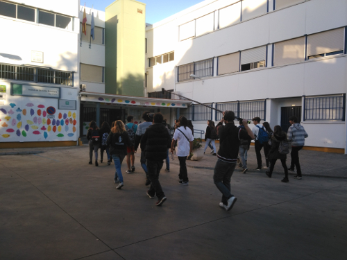 22 alumnos de 1º de Bachillerato, junto con Alfonso, participaron ayer en el rodaje, una experiencia muy interesante que nos permitió conocer de primera mano cómo se realiza la grabación de una serie