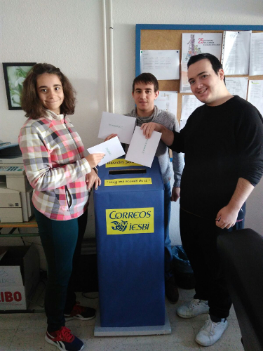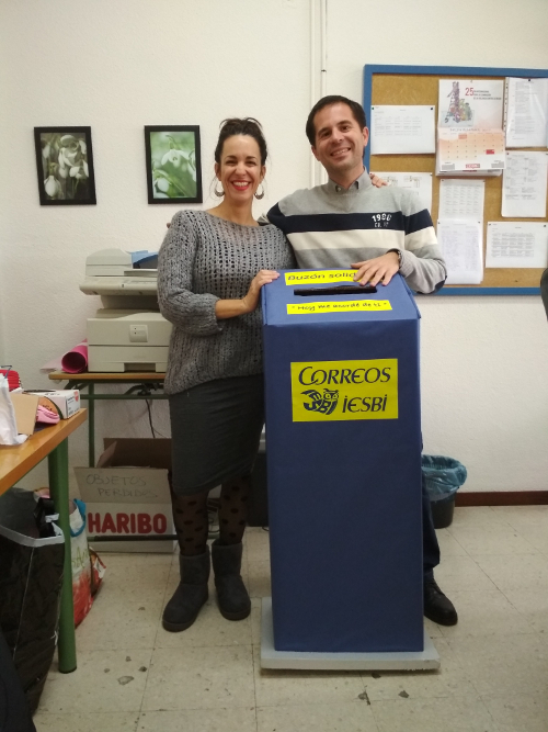 Desde aquí, dar las gracias a todos aquellos compañeros y alumnos que han participado (ESO, Aula Específica, PTVAL y Bachillerato) y hacer varias menciones especiales, a José Antonio Rosales, nuestro compañero de Plástica, que siempre colabora en todo lo que le pedimos y que en esta ocasión ha diseñado el buzón solidario y muy especialmente a Rafa Romero, compañero de Lengua y Literatura, que es la persona que nos dio a conocer la iniciativa y el encargado de llevar las cartas a la cartera para que las reparta en el hospital.