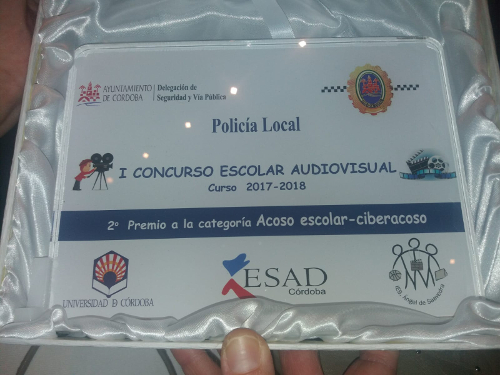El alumnado del aula de apoyo y del aula de PTVAL de nuestro centro ha participado en el I Concurso Audiovisual organizado por la jefatura de policia de Cordoba en colaboracion con la UCO sobre tematicas relacionadas con educacion vial, violencia de genero, acoso, etc. Han obtenido el 2° premio en la categoria de acoso escolar y ciberacoso.